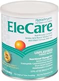 EleCare: ELECARE is a nutritionally complete elemental formula specifically indicated for infants and children who need an amino acid-based medical food or who cannot tolerate intact or hydrolyzed protein. ELECARE is indicated for the dietary management of protein maldigestion, malabsorption, severe food allergies, short-bowel syndrome, eosinophilic GI disorders, GI-tract impairment, or other conditions in which an amino acid-based diet is required. ELECARE Unflavored product is for both infants and children. For oral or tube feeding, Not for parenteral use. Features: Clinically documented to be hypoallergenic, virtually eliminating the potential for an allergic reaction; Clinically shown to support growth when used as a primary source of nutrition; 100% free amino acids as nitrogen source; One-third of fat as medium-chain triglycerides, an easily digested and well-absorbed fat source; Stringent manufacturing standards to reduce risk of whole protein contamination; Does not contain mil