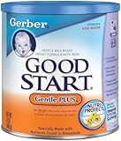 Nestle Good Start Gentle Plus Powder 12 oz Can GOOD START milk-based formulas are the first and only infant formulas that take the extra steps to create COMFORT PROTEINS. Our unique two-step process starts with gentle 100%% whey protein, the highest quality protein used in infant formula. Then, we break down this gentle whey protein ingredient into smaller pieces to be easy to digest. We call them COMFORT PROTEINS, and only GOOD START milk-based formulas have them. No other formulas take both these extra steps. GOOD START Gentle PLUS Powder Ingredients Whey Protein Concentrate (from Cow's Milk, Enzymatically Hydrolyzed, Reduced in Minerals), Vegetable Oils (Palm Olein, Soy, Coconut, and High-Oleic Safflower or High-Oleic Sunflower), Corn Maltodextrin, Lactose, Galacto-Oligosaccharides*, and less than 2%% of: Potassium Citrate, Potassium Phosphate, Calcium Chloride, Calcium Phosphate, Sodium Citrate, Magnesium Chloride, Ferrous Sulfate, Zinc Sulfate, Sodium Chloride, Copper Sulfate, Pot